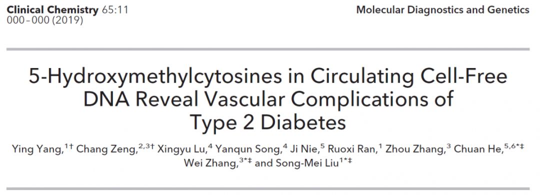 2019年10月1日,5-羟甲基化胞嘧啶(5-hydroxymethylcytosine,5hmC)在糖尿病研究领域取得重要进展。2型糖尿病(T2D)的血管并发症是导致2型糖尿病致残致死的重要病因,一直缺乏一种无创便捷的临床途径实现血管并发症的发生发展监测,达到早发现、早干预,以提高T2D病人的整体生活质量,减少卫生经济负担。
